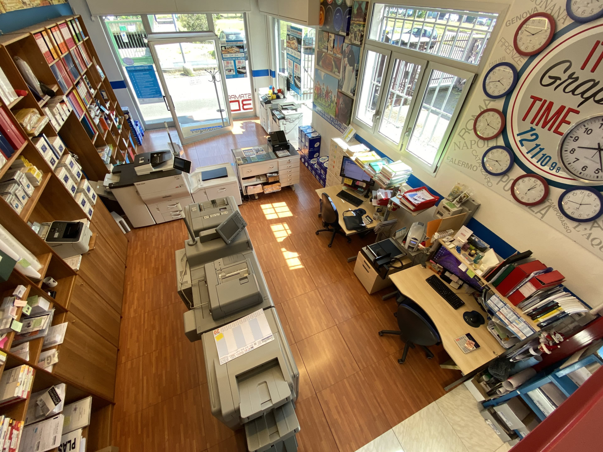 La nostra sede di 250 mq e la dinamicità degli otto membri del nostro staff rappresentano il punto di forza di Copy Center Graphos. L’ambiente di lavoro flessibile e armonioso permette di adempiere a qualsiasi tipo di esigenza, urgenza o emergenza della nostra preziosa clientela.