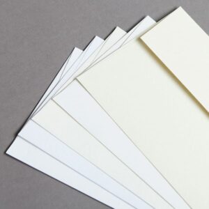 Ogni supporto è abbinabile con buste coordinate, anch’esse personalizzabili, disponibili in vari formati (12 cm x 18 cm / 11 cm x 22 cm / 17 cm x 17 cm).